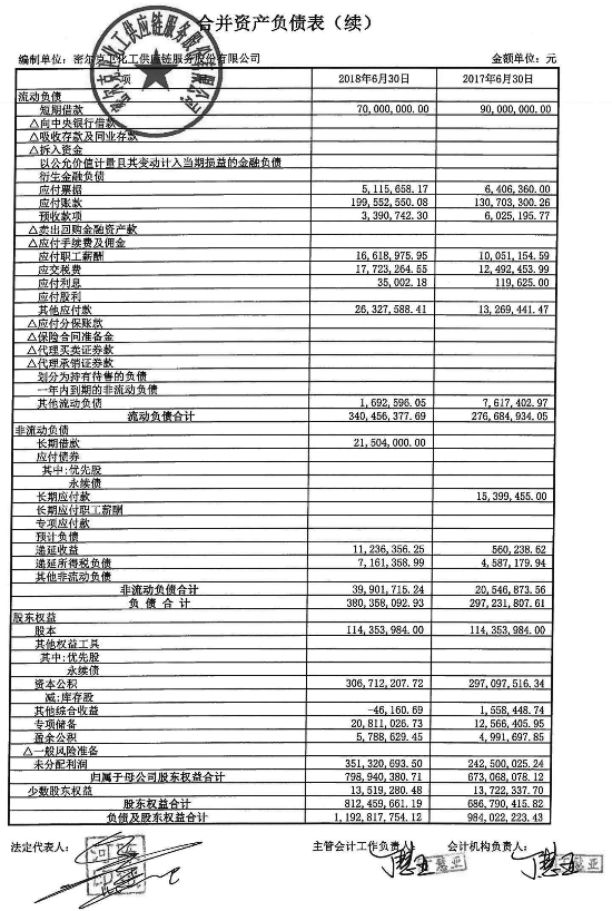 密尔克卫化工供应链服务股份有限公司2018年半年度财务报表