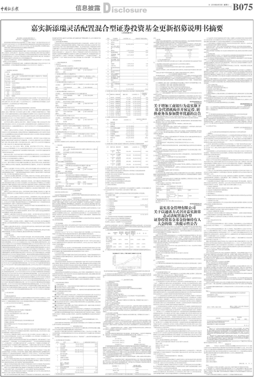 嘉实新添瑞灵活配置混合型证券投资基金更新招募说明书摘要