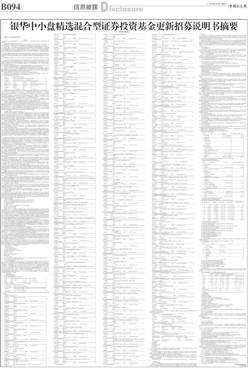 银华中小盘精选混合型证券投资基金招募说明书依据《中华人民共和国证券投资基金法》、《证券投资基金运作管理办法》、《证券投资基金销售管理办法》、《证券投资基金信息披露管理办法》、《公开募集开放式证券投资基金流动性风险管理规定》及其它有关法律法规的要求,对本基金原招募说明书进行了更新,主要更新内容如下: