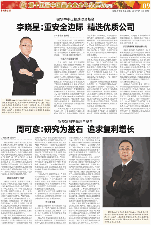 时间又过去了一年,李晓星所管理的银华中小盘精选,也从去年获得的“三年期开放式混合型持续优胜金牛基金”晋升为今年的“五年期开放式混合型持续优胜金牛基金”。持续优胜的业绩并没有让李晓星懈怠下来,他始终坚信,二级市场是一个付出便会有回报的地方。