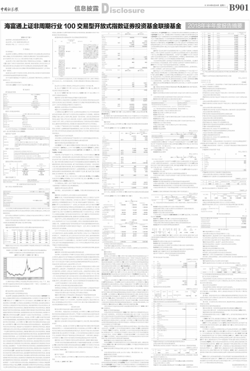 本托管人依法对海富通基金管理有限公司编制和披露的海富通上证非周期行业100交易型开放式指数证券投资基金联接基金2018年半年度报告中财务指标、净值表现、利润分配情况、财务会计报告、投资组合报告等内容进行了核查,以上内容真实、准确和完整。