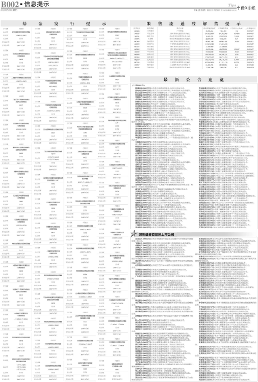 第B002版:信息提示
