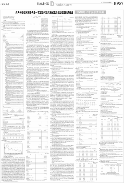中国光大银行股份有限公司依法对基金管理人编制的《光大保德信多策略优选一年证券投资基金2018年半年度报告》进行了复核,认为报告中相关财务指标、净值表现、财务会计报告(注:财务会计报告中的“金融工具风险及管理”部分未在托管人复核范围内)、投资组合报告等内容真实、准确。