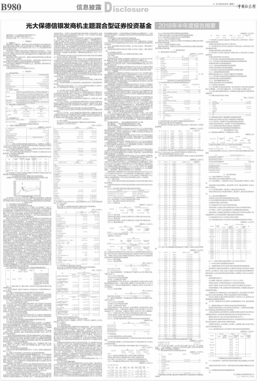 2018年上半年度,由光大保德信基金管理有限公司编制并经托管人复核审查的有关光大保德信银发商机主题混合型证券投资基金的半年度报告中财务指标、净值表现、收益分配情况、财务会计报告相关内容、投资组合报告等内容真实、准确、完整。