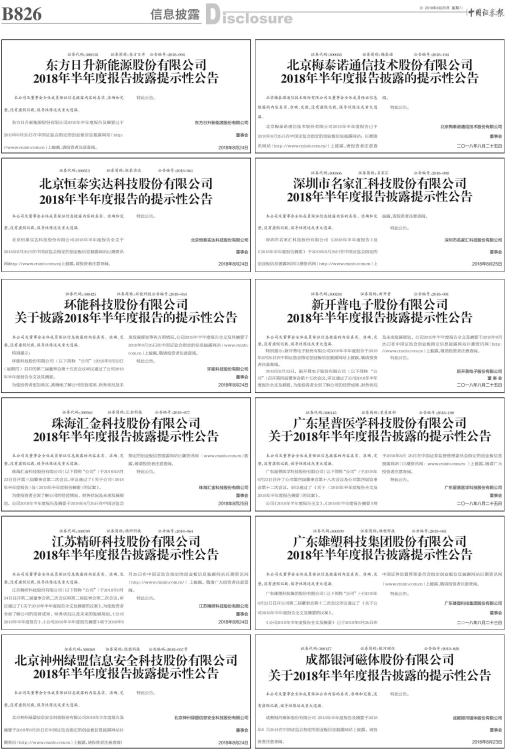 关于披露2018年半年度报告的提示性公告