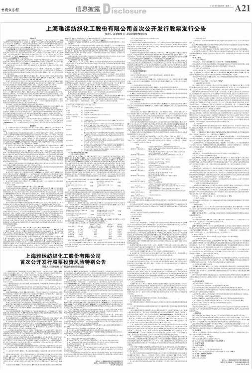 上海雅运纺织化工股份有限公司首次公开发行股票发行公告