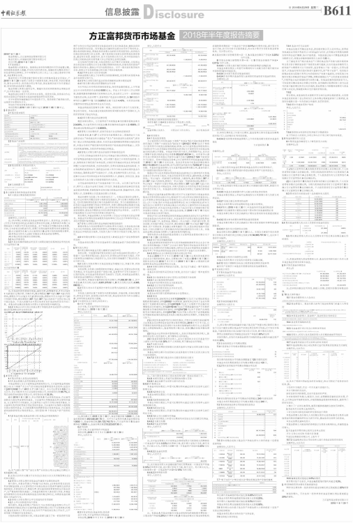 注:报告截止日2018年6月30日,基金份额净值1.0000元,方基金份额总额为492,046,381.70份。其中方正富邦货币A基金份额净值1.0000元,基金份额总额281,722,743.75份;方正富邦货币B基金份额净值1.0000元,基金份额总额210,323,637.95份。