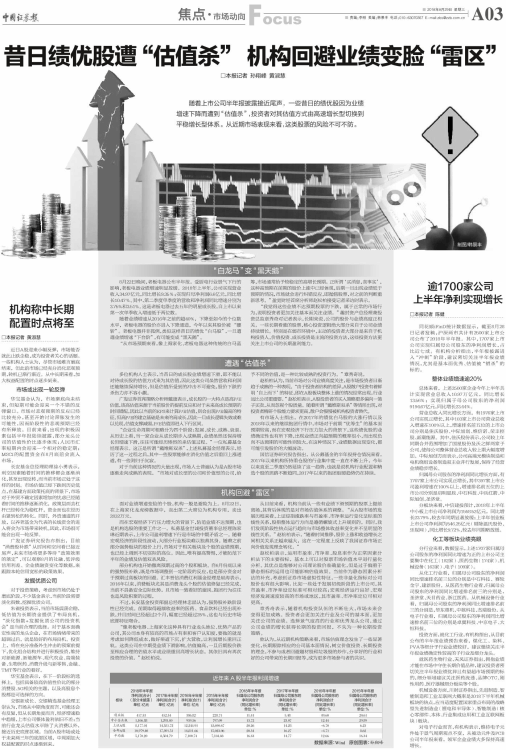 昔日绩优股遭“估值杀” 机构回避业绩变脸“雷区”