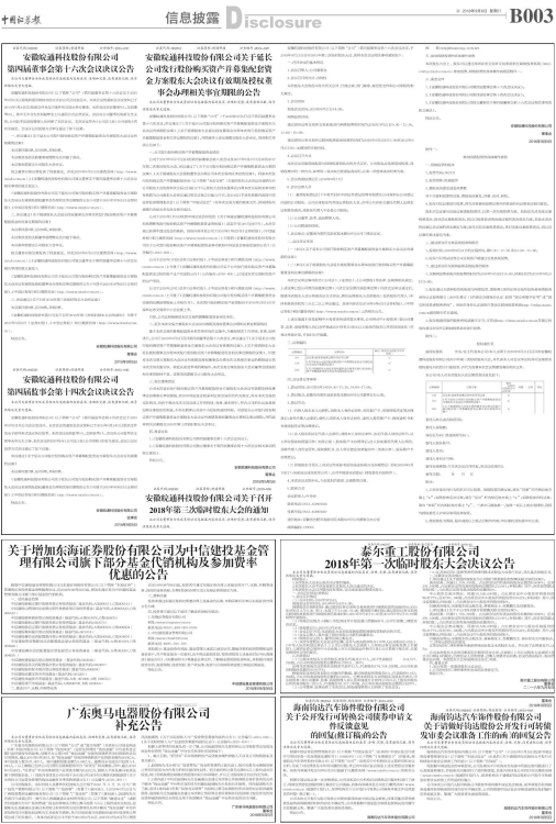 《安徽皖通科技股份有限公司关于召开2018年第三次临时股东大会的通知》刊登于2018年9月6日《证券时报》、《中国证券报》和巨潮资讯网(http://www.cninfo.com.cn)。