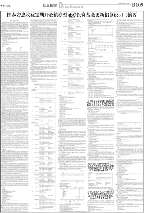 国泰安惠收益定期开放债券型证券投资基金更新招募说明书摘要