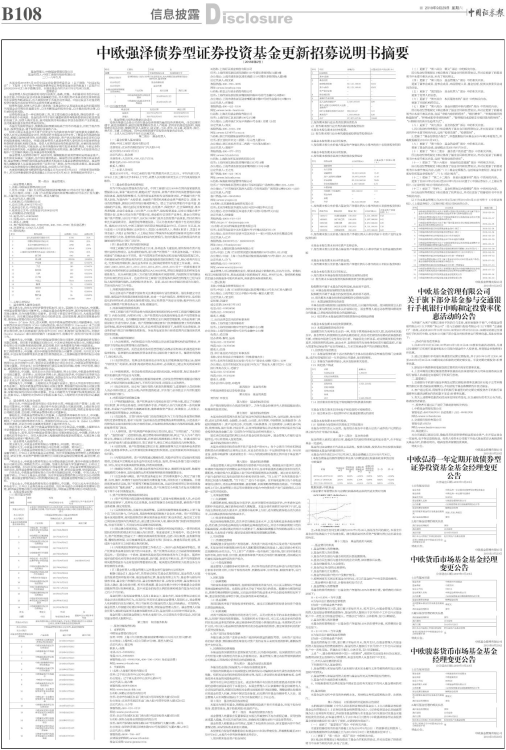 本招募说明书根据《中华人民共和国证券投资基金法》、《公开募集证券投资基金运作管理办法》、《证券投资基金销售管理办法》、《证券投资基金信息披露管理办法》及其他有关规定,并依据本基金管理人在本基金合同生效后对本基金实施的投资经营活动,对本基金管理人于2018年4月刊登的《中欧强泽债券型证券投资基金更新招募说明书》进行了更新,主要更新内容如下: