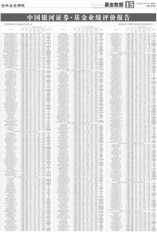 净值数据截止日期:2018年10月12日数据来源:中国银河证券研究所基金研究中心
