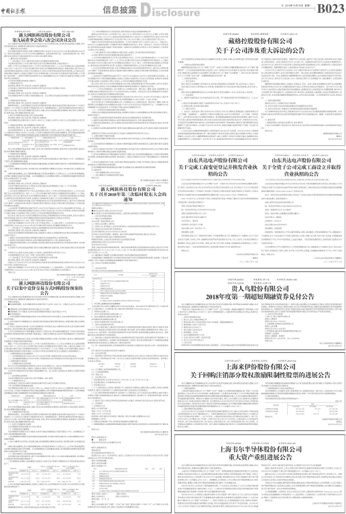 具体内容详细披露于2018年10月15日《中国证券报》、《上海证券报》、《证券时报》及上海证券交易所网站(www.sse.com.cn)的《关于召开2018年第三次临时股东大会的通知》。