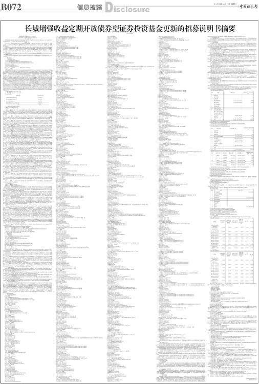 长城增强收益定期开放债券型证券投资基金更新的招募说明书摘要