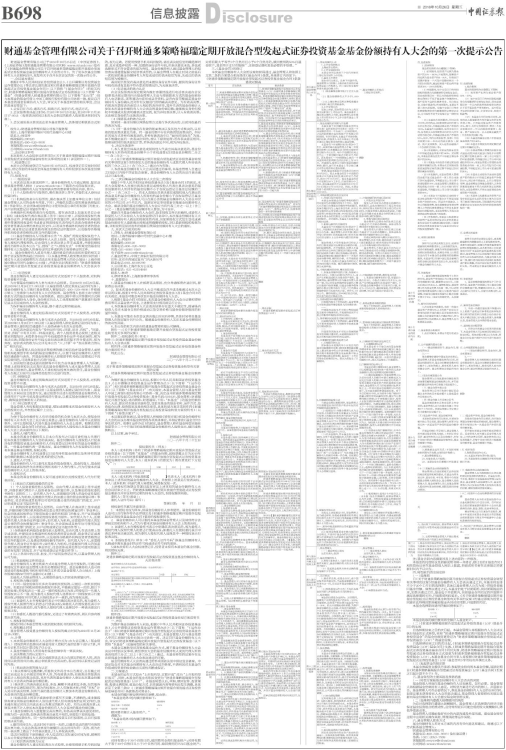 财通基金管理有限公司关于召开财通多策略福瑞定期开放混合型发起式证券投资基金基金份额持有人大会的第一次提示公告