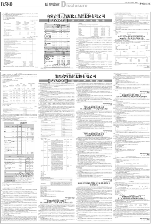 根据上海证券交易所《上市公司行业信息披露指引第十八号——化工》的要求,内蒙古君正能源化工集团股份有限公司(以下简称“公司”)现将2018年第三季度主要经营数据披露如下: