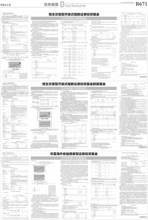 截至2018年9月30日,华夏恒生ETF联接A份额净值为1.5065元,本报告期份额净值增长率为0.39%,同期业绩比较基准增长率0.18%,华夏恒生ETF联接A本报告期跟踪偏离度为+0.21%;华夏恒生ETF联接C份额净值为1.5077元,本报告期份额净值增长率为2.04%,同期业绩比较基准增长率1.98%,华夏恒生ETF联接C本报告期跟踪偏离度为+0.06%。与业绩比较基准产生偏离的主要原因为日常运作费用、指数结构调整、申购赎回、成份股分红等产生的差异。