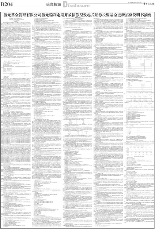 鑫元基金管理有限公司鑫元瑞利定期开放债券型发起式证券投资基金更新招募说明书摘要