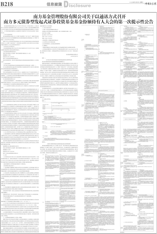 南方多元债券型发起式证券投资基金基金份额持有人大会的第一次提示性公告