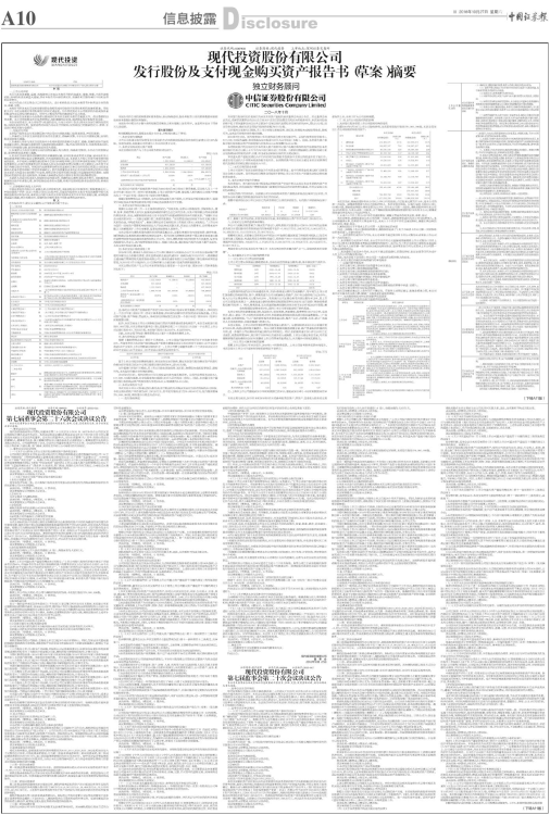 中信证券股份有限公司、湖南人和人律师事务所、天职国际会计师事务所(特殊普通合伙)、中瑞世联资产评估(北京)有限公司均已出具声明,同意现代投资在本报告书及其摘要中援引其提供的相关材料及内容,承诺其出具的与本次交易有关的申请文件中不存在虚假记载、误导性陈述或重大遗漏,并对其真实性、准确性和完整性承担个别和连带的法律责任。