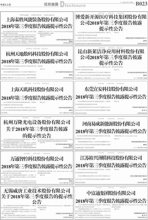 为使投资者全面了解公司2018年第三季度的经营成果和财务状况,公司《2018年第三季度报告》于2018年10月27日在中国证监会指定的创业板信息披露网站上披露,敬请投资者注意查阅。