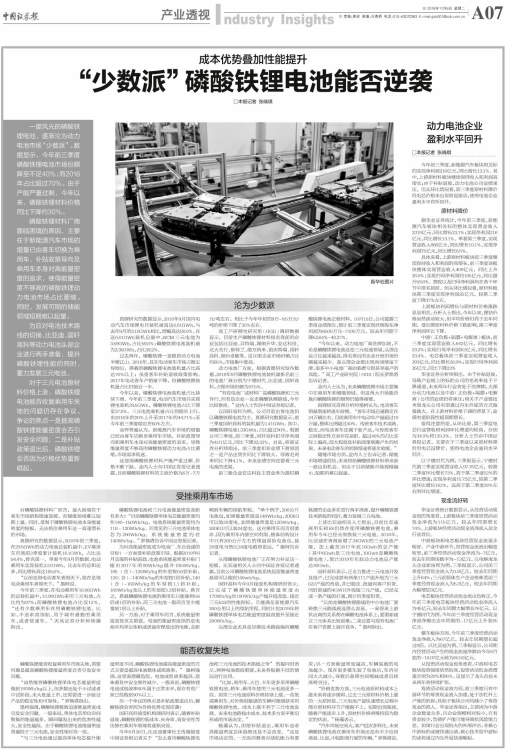 “少数派”磷酸铁锂电池能否逆袭