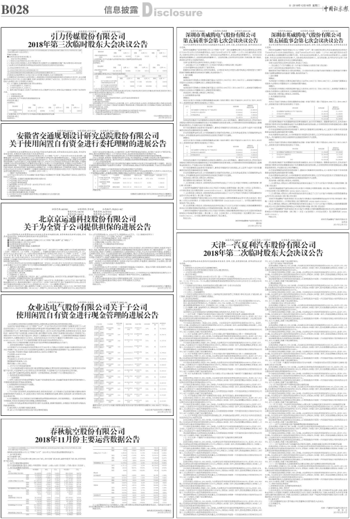 春秋航空股份有限公司(以下简称“公司”)2018年11月份主要运营数据情况如下: