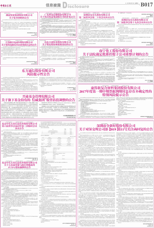 关于对深交所公司部【2019】第11号关注函回复的公告