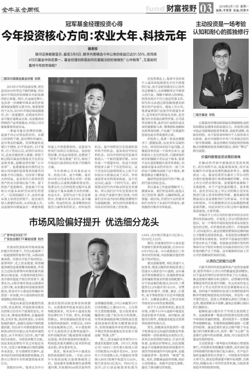 主动投资是一场考验认知和耐心的孤独修行,市场喜欢奖励谦虚与勤思,而在我们最自鸣得意的时候对我们迎头痛击。在产业升级和金融改革的大背景下,中国资本市场将大有可为,基金经理需要不断开拓视野,苦炼内功,把握未来十年的历史性机遇,为投资者创造丰厚的投资回报。