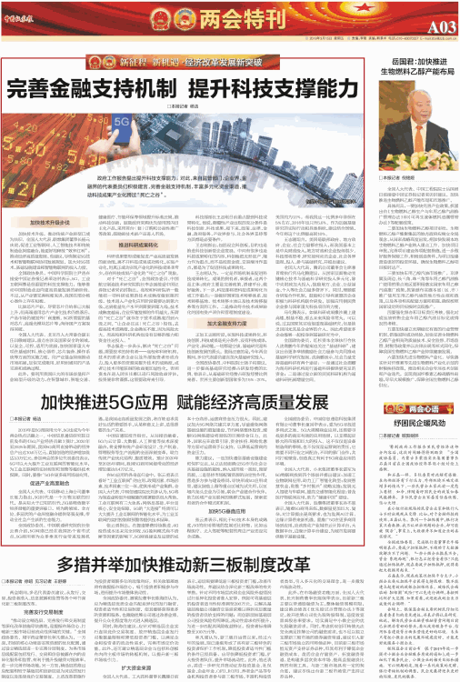 政府工作报告提出提升科技支撑能力。对此,来自监管部门、企业界、金融界的代表委员们积极建言,完善金融支持机制,丰富多元化资金渠道,推动科技成果产业化跨过“死亡之谷”。