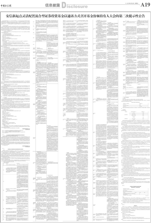 安信新起点灵活配置混合型证券投资基金以通讯方式召开基金份额持有人大会的第二次提示性公告