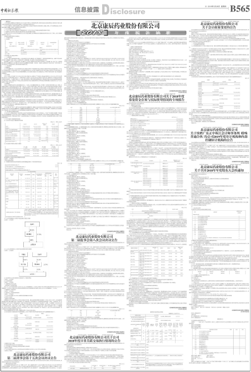 具体内容详见公司于指定信息披露媒体披露的《北京康辰药业股份有限公司关于2018年度募集资金存放与实际使用情况的专项报告》。