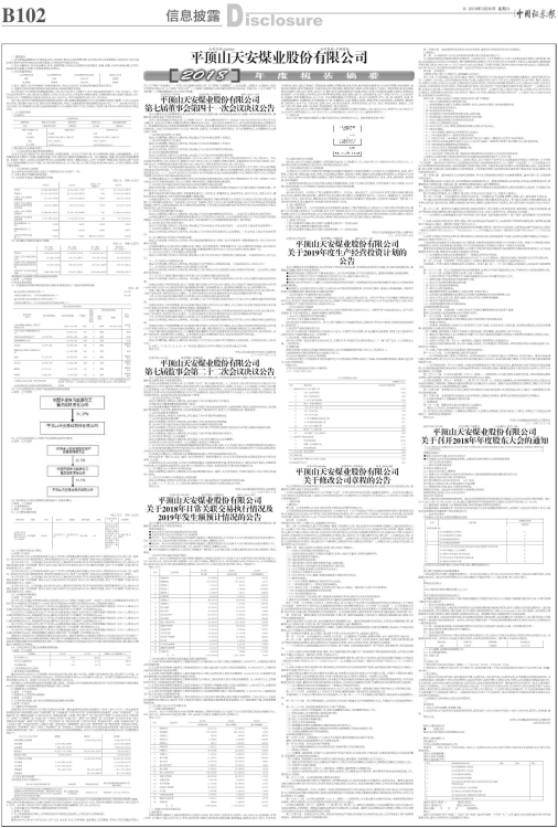 平顶山天安煤业股份有限公司(以下简称“公司”)第七届董事会第四十一次会议于2019年3月28日在平顶山市平安大厦召开,会议由公司第七届董事会董事长潘树启先生主持。本次会议应到董事15人,亲自出席及授权委托出席董事15人。杜波董事因另有公务委托张建国董事代为出席表决,独立董事陈栋强先生因另有公务委托独立董事唐建新先生代为出席表决。会议召开及程序符合《公司法》等法律、法规及《公司章程》的有关规定。经与会董事审议,本次董事会会议通过如下事项: