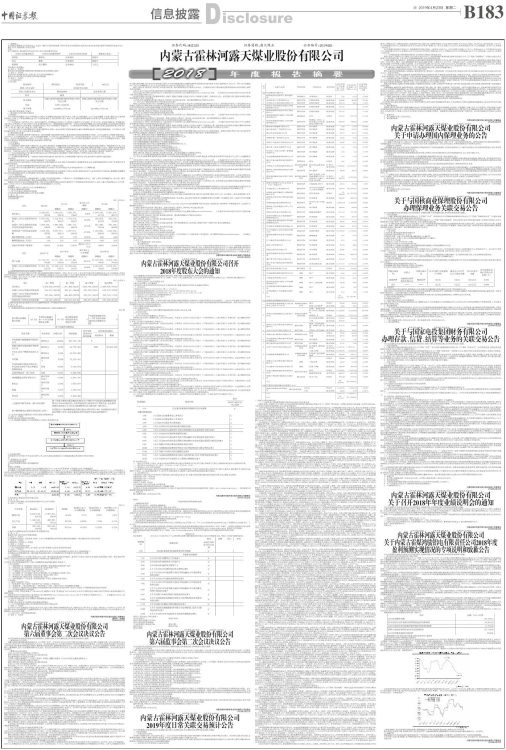 内蒙古霍林河露天煤业股份有限公司(以下简称“公司”)《2018年年度报告》及《2018年年度报告摘要》已经2019年4月22日召开的公司第六届董事会第二次会议审议通过。《2018年年度报告摘要》已于2019年4月23日刊登于《中国证券报》《上海证券报》《证券时报》及巨潮资讯网站(http://www.cninfo.com.cn),《2018年年度报告》正文刊登于巨潮资讯网站,供全体股东和投资者查询阅读。