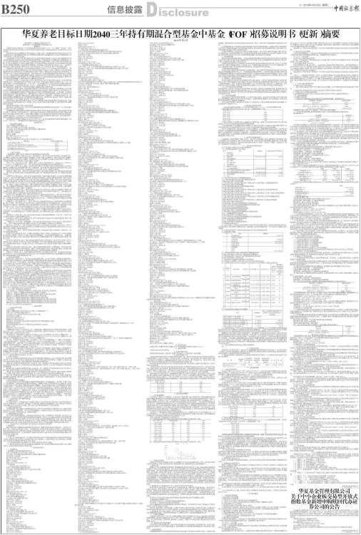 华夏养老目标日期2040三年持有期混合型基金中基金(FOF)招募说明书(更新)依据《基金法》、《运作办法》、《销售办法》、《信息披露办法》、基金合同及其他法律法规的要求,对本基金管理人于2018年8月25日刊登的本基金招募说明书进行了更新,主要更新内容如下: