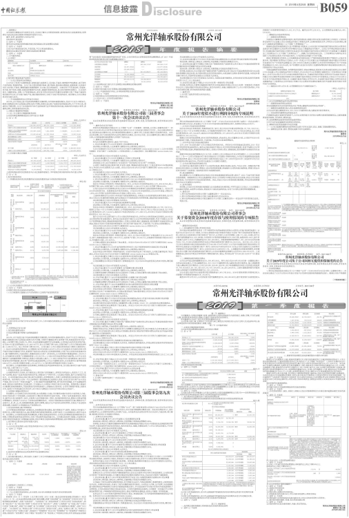经常州光洋轴承股份有限公司(以下简称“公司”)全体董事一致同意,公司第三届董事会第十一次会议于2019年4月23日在常州市新北区汉江路52号公司1号会议室以现场方式召开,会议应到会董事10名,实际参加会议董事10名,其中参加现场表决董事8人,董事王鸣、吕忠诚以通讯方式出席并表决。本次会议的召集、召开与表决程序符合法律法规的有关规定,会议合法有效。会议由董事长程上楠先生召集并主持,公司的监事和高级管理人员列席了本次会议。