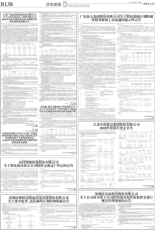3、本次解除限售股份的上市日期为2019年4月30日。
