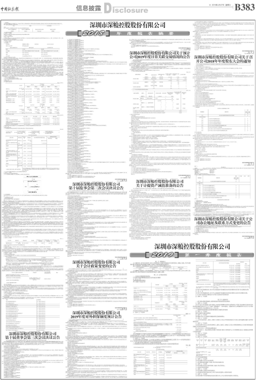 证券代码:000019、200019 证券简称:深粮控股、深粮B 公告编号:2019-41