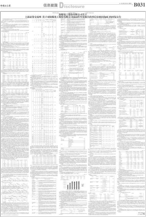 上海证券交易所《关于对阳煤化工股份有限公司2018年年度报告的事后审核问询函》的回复公告