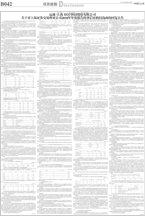 关于对上海证券交易所对公司2018年年度报告的事后审核问询函的回复公告
