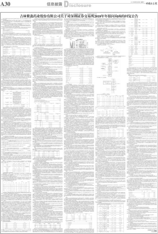 吉林紫鑫药业股份有限公司关于对深圳证券交易所2018年年报问询函的回复公告
