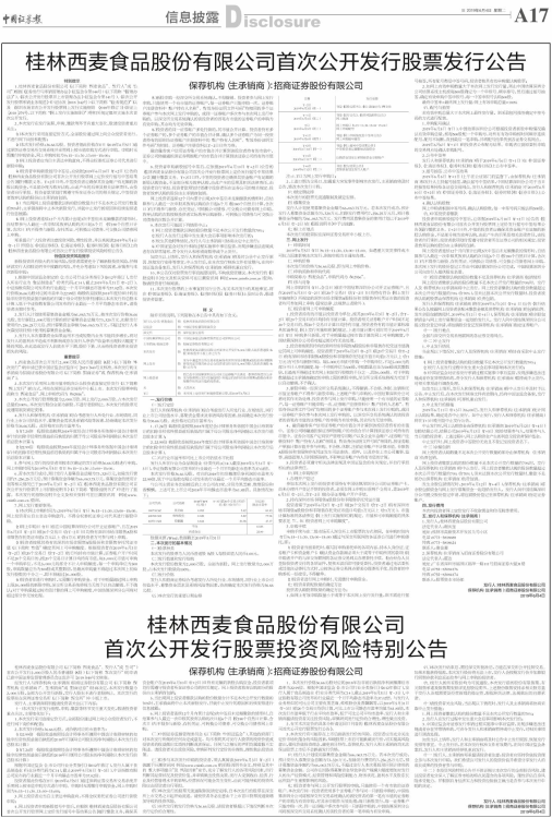 桂林西麦食品股份有限公司首次公开发行股票发行公告