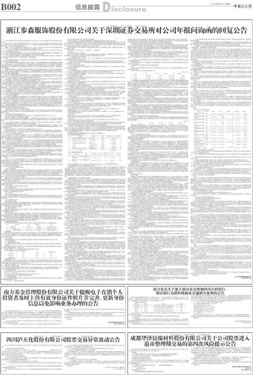 浙江步森服饰股份有限公司关于深圳证券交易所对公司年报问询函的回复公告