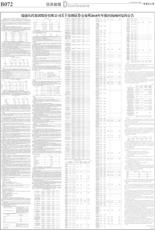 瑞康医药集团股份有限公司(以下简称“公司”、“瑞康医药”)于2019年6月14日收到深圳证券交易所中小企业板管理部对公司下发的《关于对瑞康医药2018年年报的问询函》(中小板年报问询函【2019】第330号)(以下简称“问询函“),公司董事会就问询函所列问题认真核查,并进行了书面说明回复,现将回复公告如下: