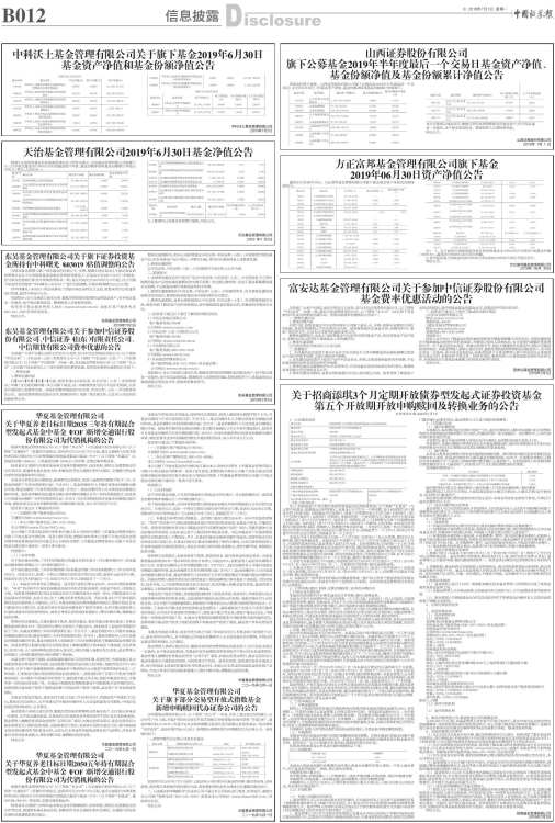 关于旗下开放式基金2019年上半年度最后一个自然日基金
