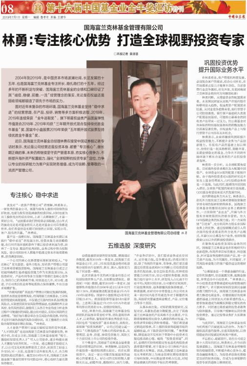 富安达基金管理有限公司2019年6月30日基金净值公告