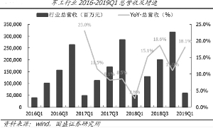 中报期有望验证军工的成长逻辑。2019年一季度军工行业收入同比增长18%,归母净利同比增长67%,预收高企现金流改善明显,看好航空航天、信息化等全年业绩表现,观点有望在中报期得到初步验证。