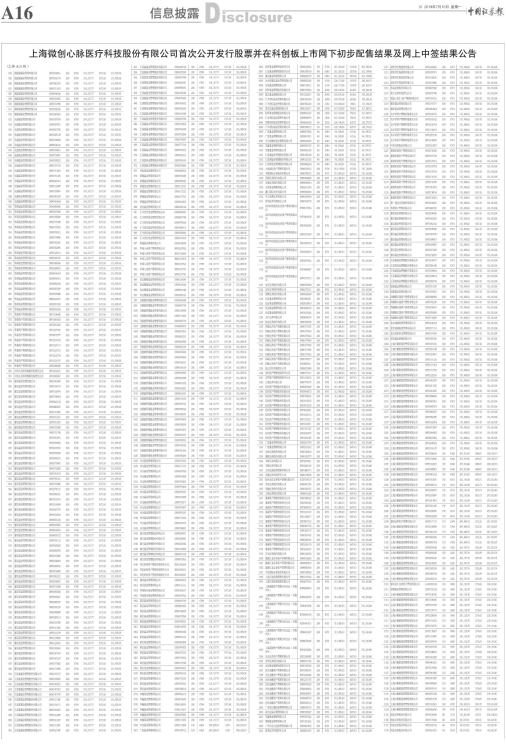 上海微创心脉医疗科技股份有限公司首次公开发行股票并在科创板上市网下初步配售结果及网上中签结果公告