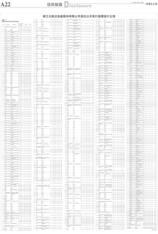 浙江大胜达包装股份有限公司首次公开发行股票发行公告