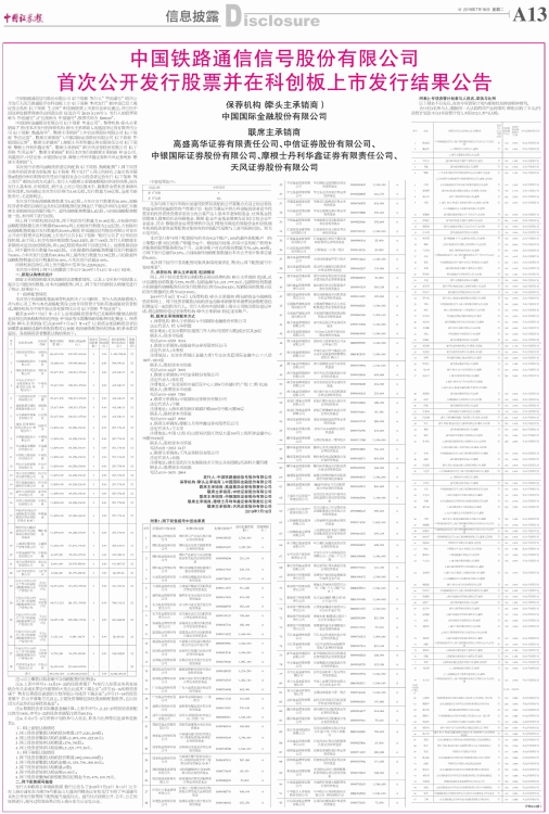 首次公开发行股票并在科创板上市发行结果公告